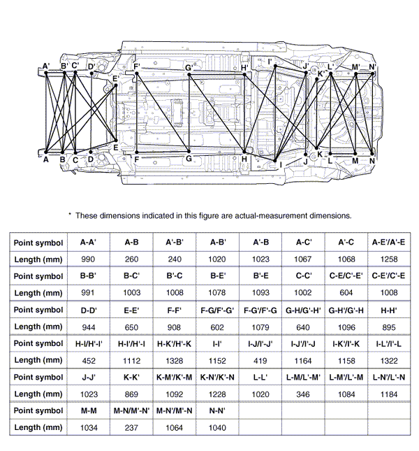 Kia Optima: Actual-Measurement Dimensions - Under Body. Body Repair - Body Dimensions - Body (Interior and Exterior) - Kia Optima TF 2011-2025 Service ManualKia Optima: Actual-Measurement Dimensions