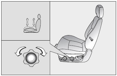 To change the height (front portion) of the seat cushion, rotate the knob located on the outside of the seat cushion.