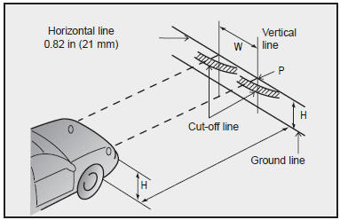 1. Adjust headlights so that main axis of light is parallel to center line of the body and is aligned with point “P” shown in the illustration.