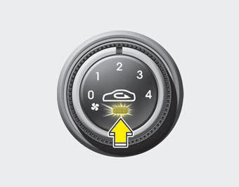 The indicator light on the button illuminates when the recirculated air position is selected.