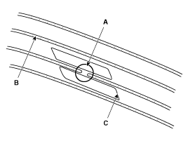 the broken portion of the glass antenna wire (B) with cellophane tape (C). |