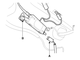 the voltage between the harness side feeder cable (A) and body ground (B).
