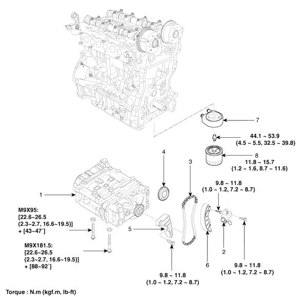 Kia Optima: Balance Shaft & Oil Pump. Components and Components Location - Lubrication System - Engine Mechanical System - Kia Optima TF 2011-2025 Service ManualKia Optima: Balance Shaft & Oil Pump. Components and Components Location