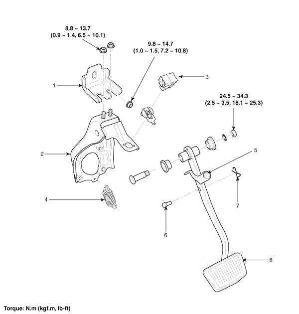 Kia Optima: Brake Pedal. Components and Components Location - Brake System - Brake System - Kia Optima TF 2011-2025 Service ManualKia Optima: Brake Pedal. Components and Components Location