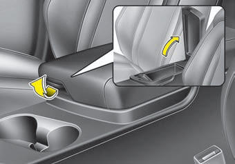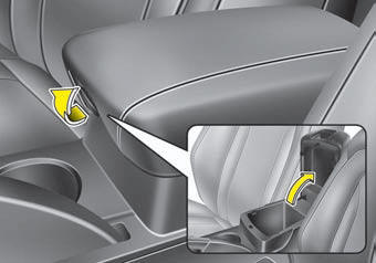 To open the center console storage, pull up the lever.
