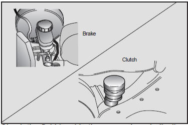Before removing the reservoir cap and adding brake fluid, clean the area around the reservoir cap thoroughly to prevent brake/clutch fluid contamination.