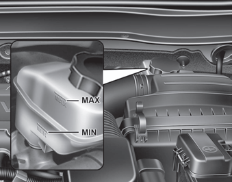 Check the fluid level in the reservoir periodically. The fluid level should be between MAX and MIN marks on the side of the reservoir.