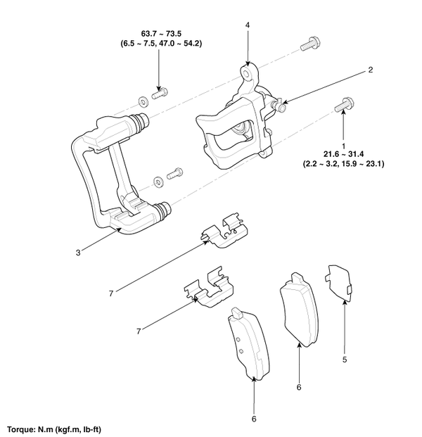 Kia Optima: Components(Without EPB) - Rear Disc Brake. Components and Components Location - Brake System - Brake System - Kia Optima TF 2011-2025 Service ManualKia Optima: Components(Without EPB)