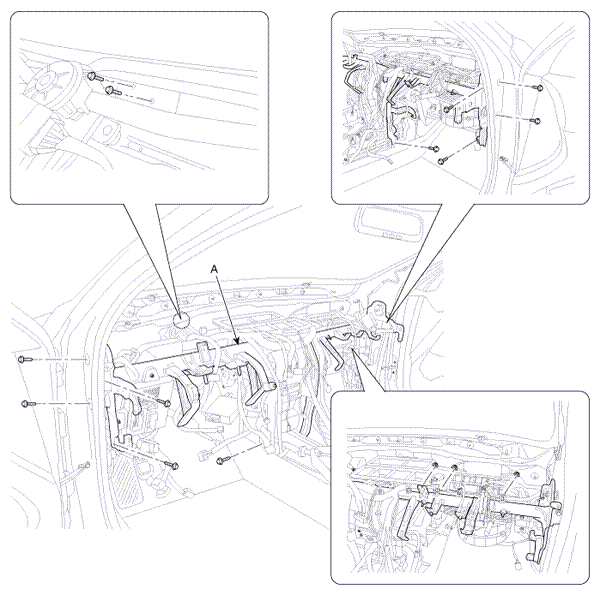 bolts and nuts, then remove the main crash pad assembly (A).