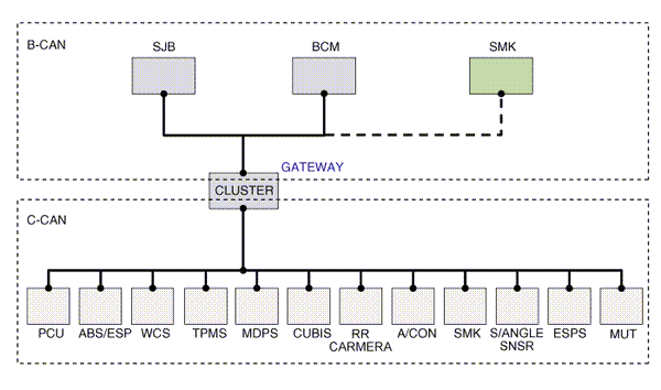 The Network of the SJB(Smart Junction Box) consists of Low speed CAN as shown in the following figure.