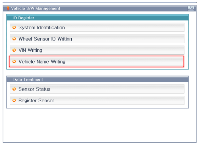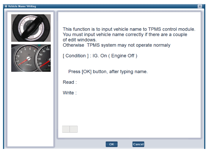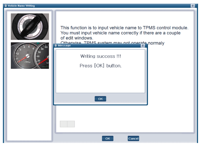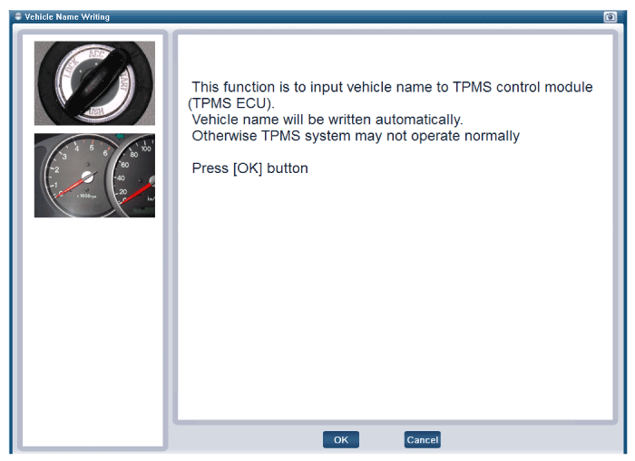 | 2. | Select the "vehicle model" and "TPMS" on GDS vehicle selection screen, then select OK. |