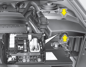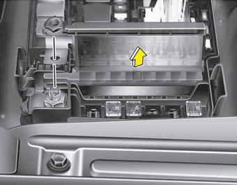 After checking the fuse panel in the engine compartment, securely install the fuse panel cover. If not, electrical failures may occur from water contact.