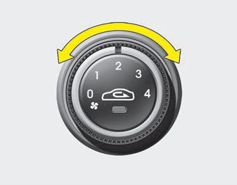 The fan speed control knob allows you to control the fan speed of the air flowing from the ventilation system. To change the fan speed, turn the knob to the right for higher speed or left for lower speed. Setting the fan speed control knob to the “0” position turns off the fan.