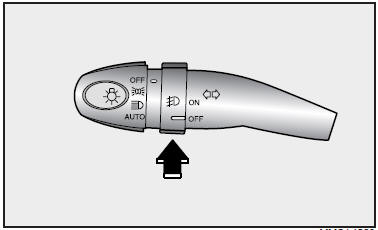 To turn on the front fog lights, place the switch in the “ON” position. They will come on when the headlight switch is in the first or second position.