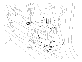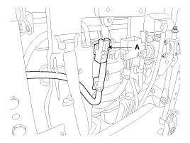 connector lock pin, remove the seat belt pretensioner connector (A), loosen