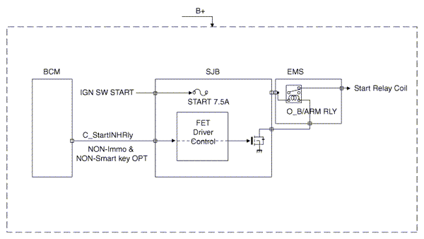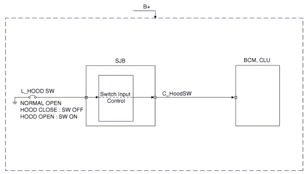 Signal Flow DiagramThis chapter defines signal between SJB and peripheral electrical apparatus in the form of signal flow diagram. Control of the IPS and relay is required by BCM. Following figure expresses power source that is operating power condition