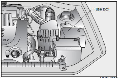 After checking the fuse box in the engine compartment, please securely install the fuse box cover. If not, electrical failures may occur from water leaking in.