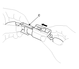 Hold both connector halves and press firmly until the projection(C) of the sleeve-side