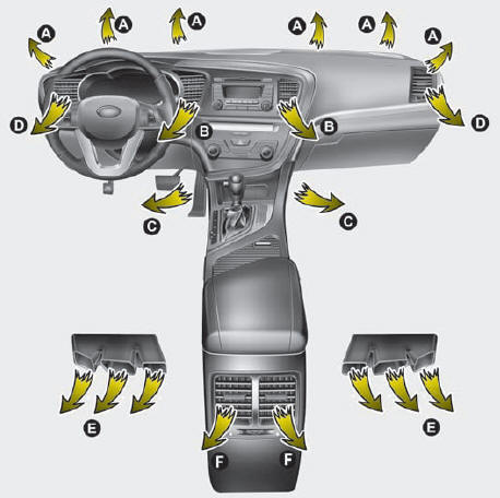 Kia Optima: Heating and air conditioning1. Start the engine.