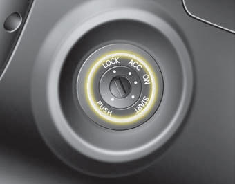 Whenever a front door is opened, the ignition switch will illuminate for your convenience, provided the ignition switch is not in the ON position. The light will go off immediately when the ignition switch is turned on. It will also go off after about 30 seconds when the door is closed.