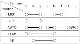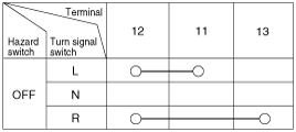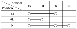 With the multifunction switch in each position, make sure that continuity exists between the terminals below. If continuity is not as specified, replace the multi-function switch.