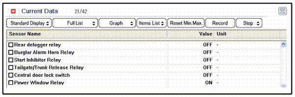 | 2. | To check the input value of rear glass defogger switch, select option "Body Control Module". |