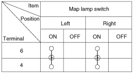 Kia Optima: InspectionRemove the overhead console lamp assembly then check for continuity between terminals. If the continuity is not as specified, replace the map lamp switch.
