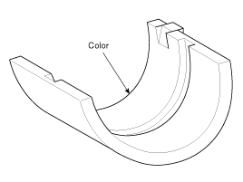 (9) If the plastigage measures too wide or too narrow, remove the upper half of the bearing, install a new, complete bearing with the same color mark (select the color as shown in the next column), and recheck the clearance.