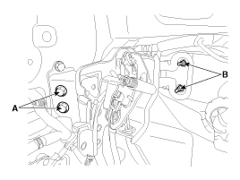 and then install the parking brake pedal mounting bolts (A) and nuts (B).