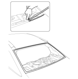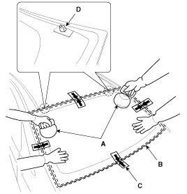 window glass (A) as shown. Apply the adhesive within 30 minutes after applying