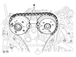 marks (A) on the intake and exhaust CVVT sprockets aligned with the top