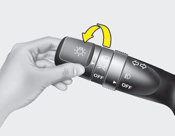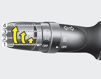 To operate the lights, turn the knob at the end of the control lever to one of the following positions: