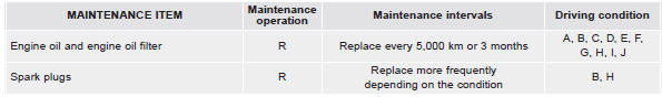 Kia Optima: MAINTENANCE UNDER SEVERE USAGE CONDITIONS (T-GDI ENGINE)The following items must be serviced more frequently on cars mainly used under severe driving conditions. Refer to the chart below for the appropriate maintenance intervals.