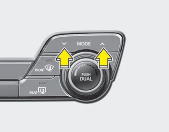 The mode selection button controls the direction of the air flow through the ventilation system.