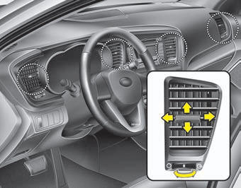 The outlet vents can be opened or closed separately using the thumbwheel. Also, you can adjust the direction of air delivered from these vents using the vent control lever as shown.