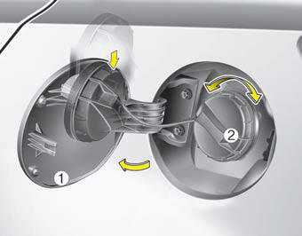 the cap, turn the fuel tank cap (2) counterclockwise.