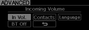 While in ADVANCED menu, select “In Vol.” Use the knob key to set the desired volume and press the ENTER button.