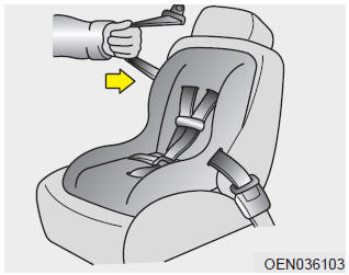 6. Push and pull on the child restraint system to confirm that the seat belt is holding it firmly in place. If it is not, release the seat belt and repeat steps 2 through 6.