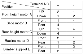 each motor. A : Front height motor B : Slide motorC : Rear height motor D : Recline motorE : Lumber support motor