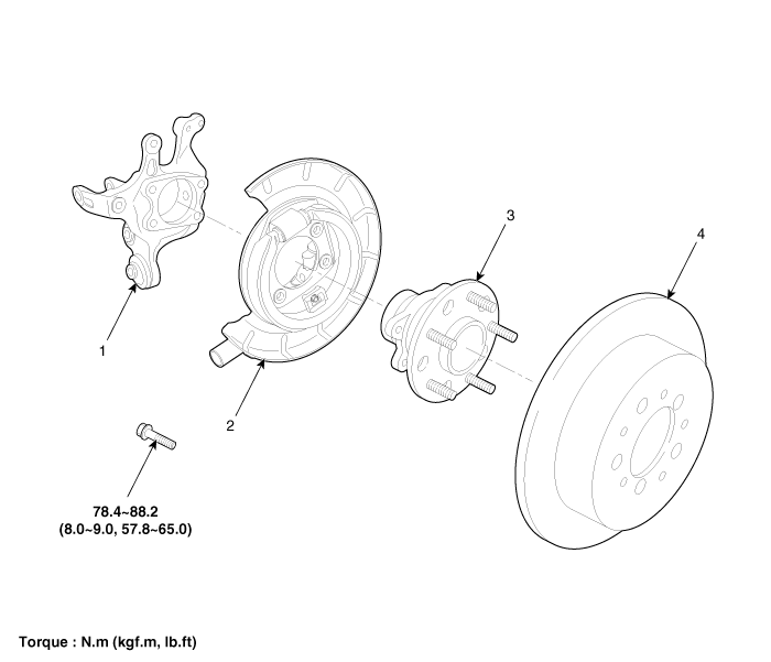 Kia Optima: Rear Hub - Carrier. Components and Components Location - Rear Axle Assembly - Driveshaft and axle - Kia Optima TF 2011-2025 Service ManualKia Optima: Rear Hub - Carrier. Components and Components Location