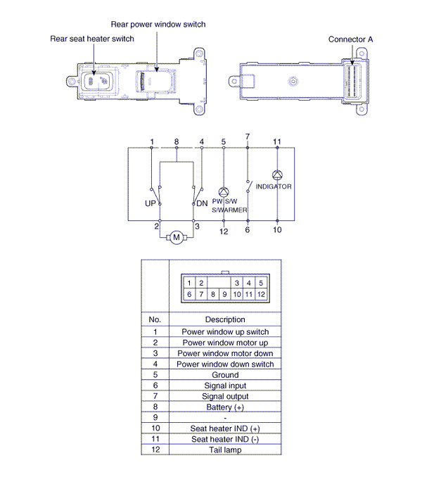 Kia Optima: Rear Power Window + Seat Heater Switch