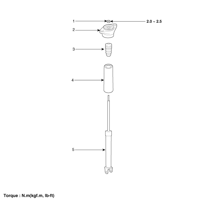Kia Optima: Rear Shock Absorber. Components and Components Location - Rear Suspension System - Suspension System - Kia Optima TF 2011-2025 Service ManualKia Optima: Rear Shock Absorber. Components and Components Location