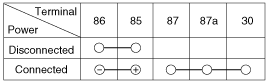1. There should be continuity between the No.30, 87a and No.87 terminals when power and ground are connected to the No.85 and No.86 terminals.