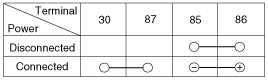 2. There should be no continuity between the No.30 and No.87 terminals when power is disconnected.