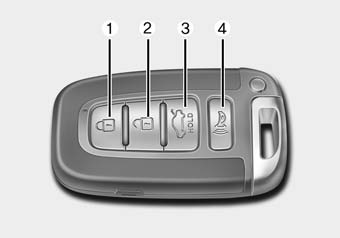 The horn sounds and the hazard warning lights blink for about 30 seconds if this button is pressed for more than 0.5 seconds. To stop the horn and lights, press any button on the transmitter.