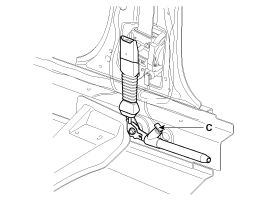 pretensioner (C), keep on pushing the lock pin (A) as arrow direction. And
