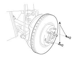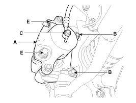 caliper mounting bolts (B), then remove the front caliper assembly (A).