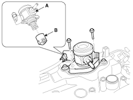 valve connector (A) and the vacuum hose (B), and then remove the intercooner