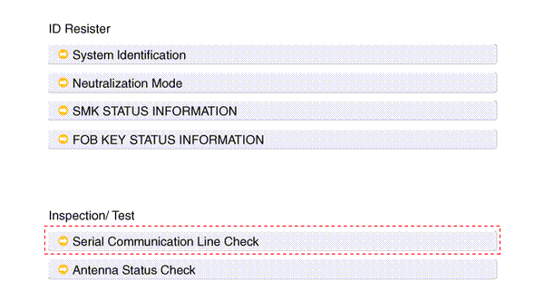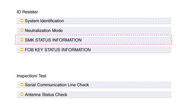 2. After IGN ON, select the "SMK STATUS INFO".