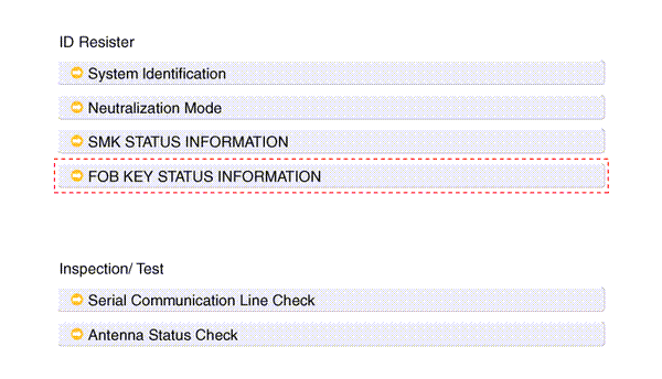 2. After IGN ON, select the "FOB KEY STATUS INFO".